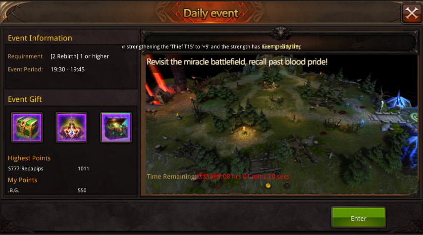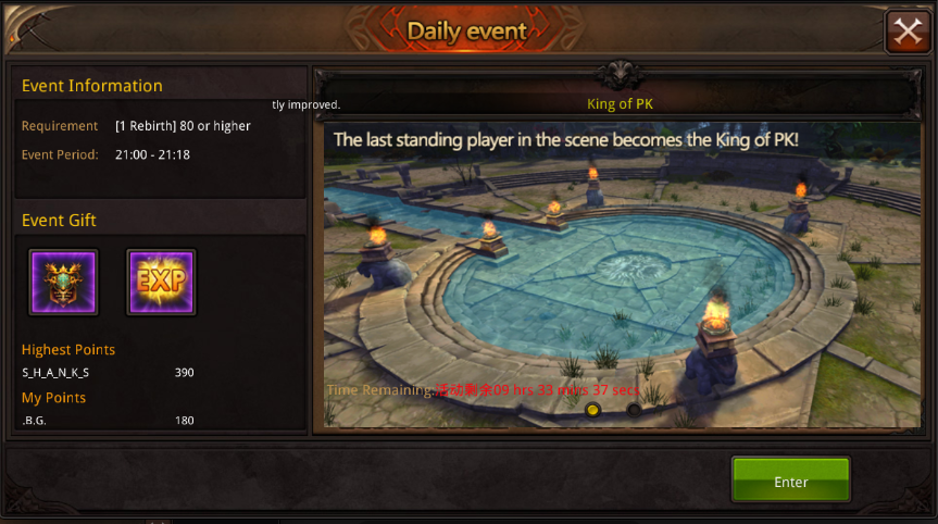 King of PK: PVP event, all against all, where only the last survivor will be the winner.