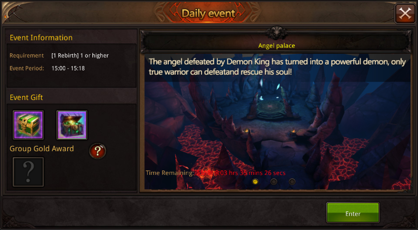 Angel Palace: This daily event consists of killing the Angel to earn its reward. Depending on the Ranking you achieve, it will be the rewards you will get.