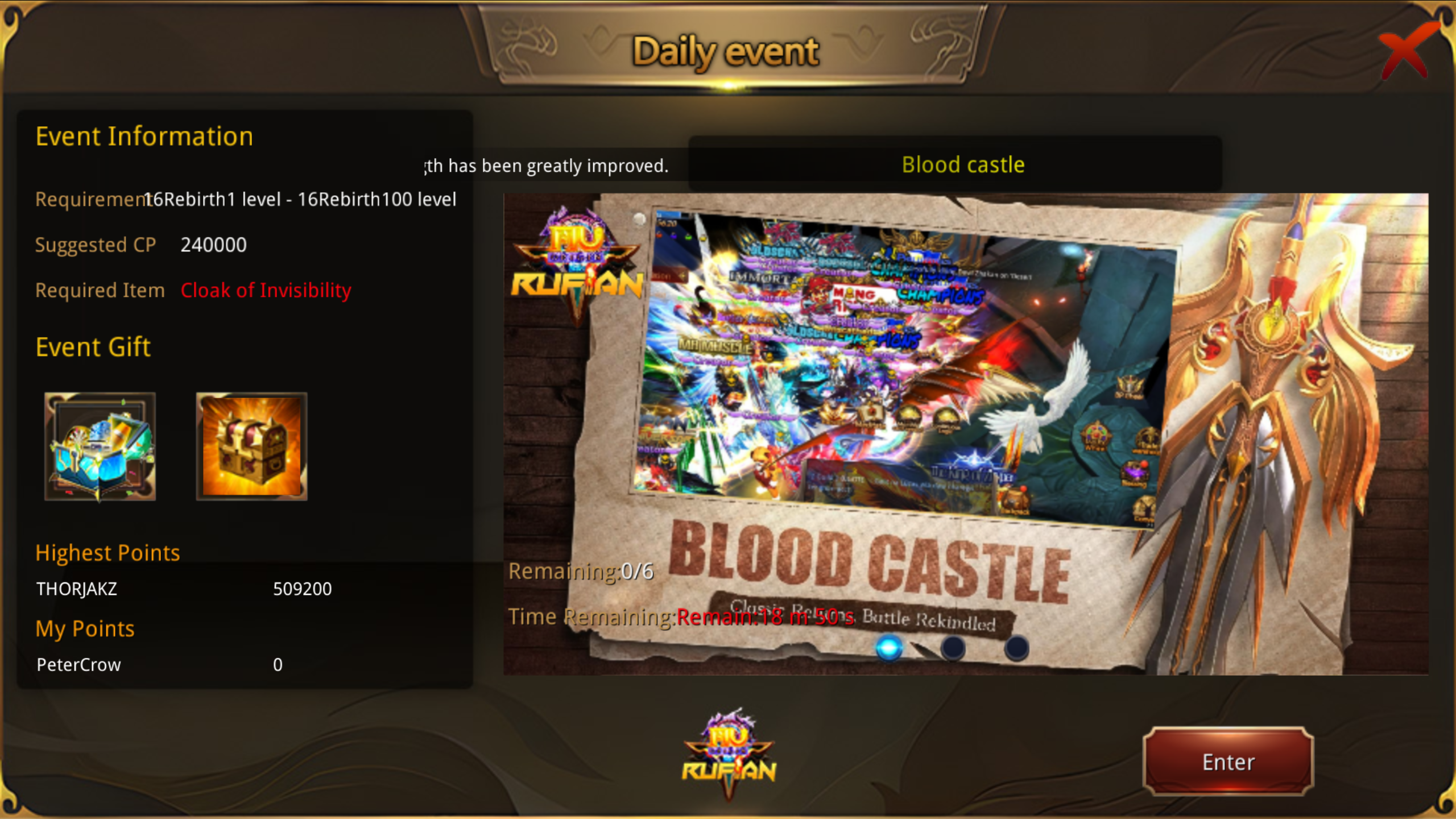 Blood Castle: The purpose of this is to kill a number of monsters, in order to open the doors of the castle and kill the Angel Statue to earn the final reward.