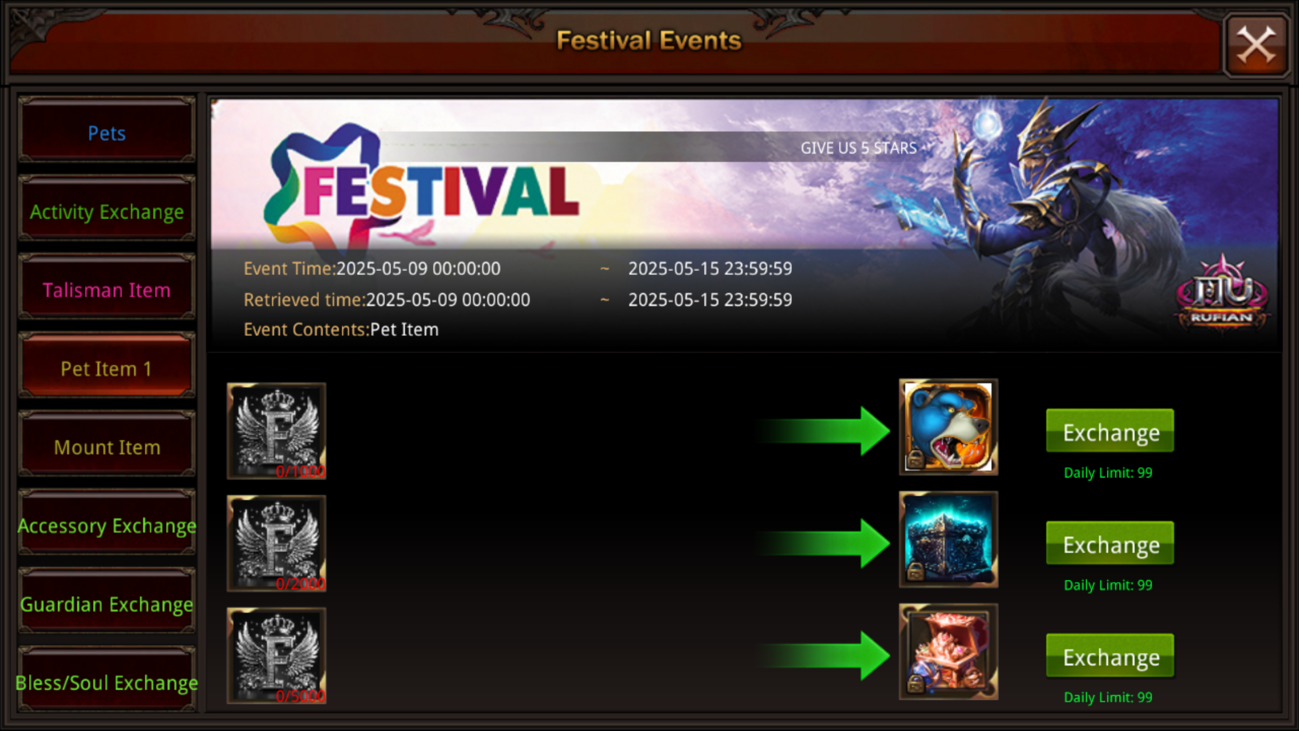 Pet Items are materials used to complete certain illustrations, they can be obtained in Festival Event - Pet Item